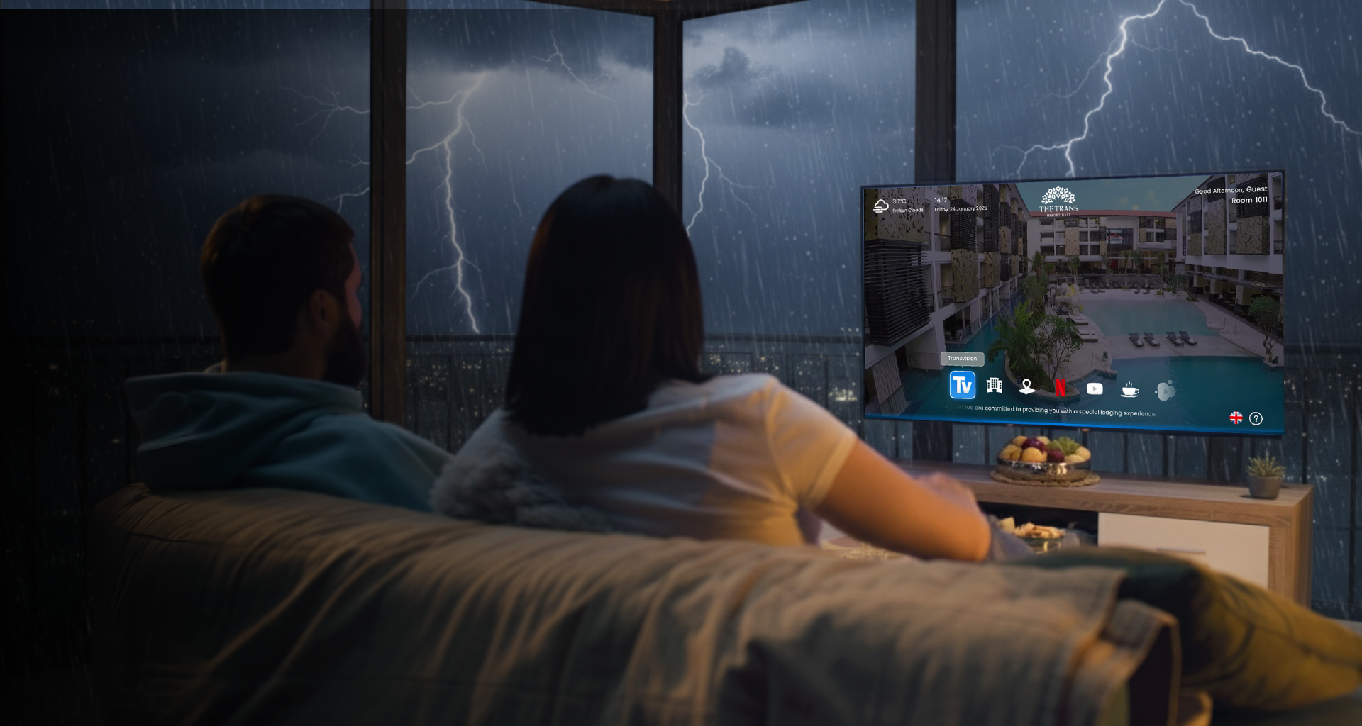 Dengan Transvision Hospitality, setiap tamu akan merasakan kenyamanan dan hiburan berkualitas tinggi dengan kecanggihan produk kami. Karena kenyamanan mereka adalah prioritas kami.